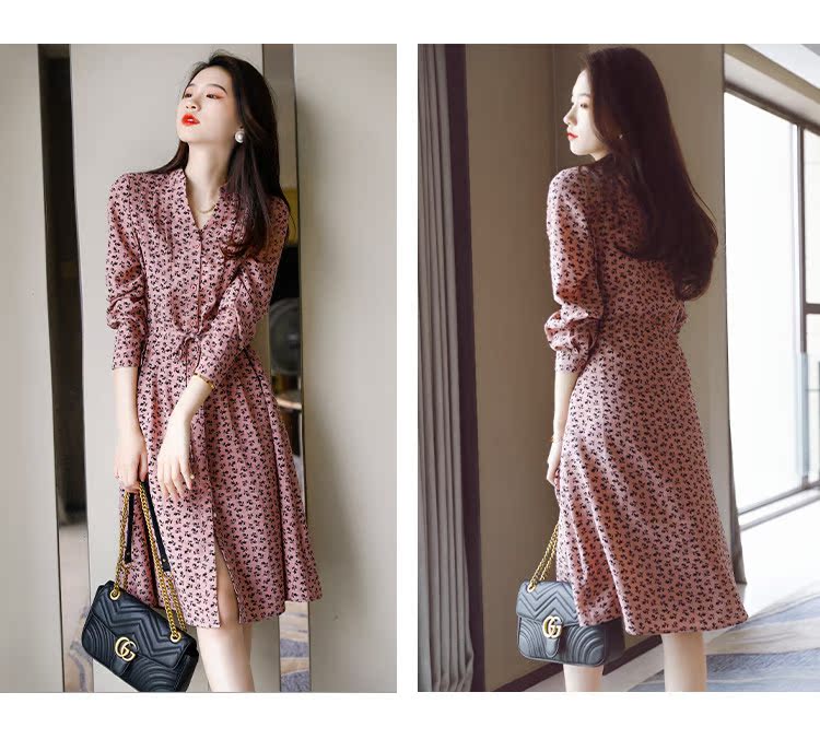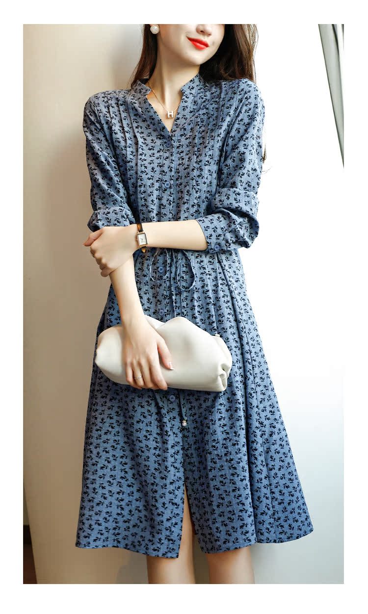 Baozi 2022 summer new fashion temperament waist tie V-neck mid-length version a-word floral dress for women