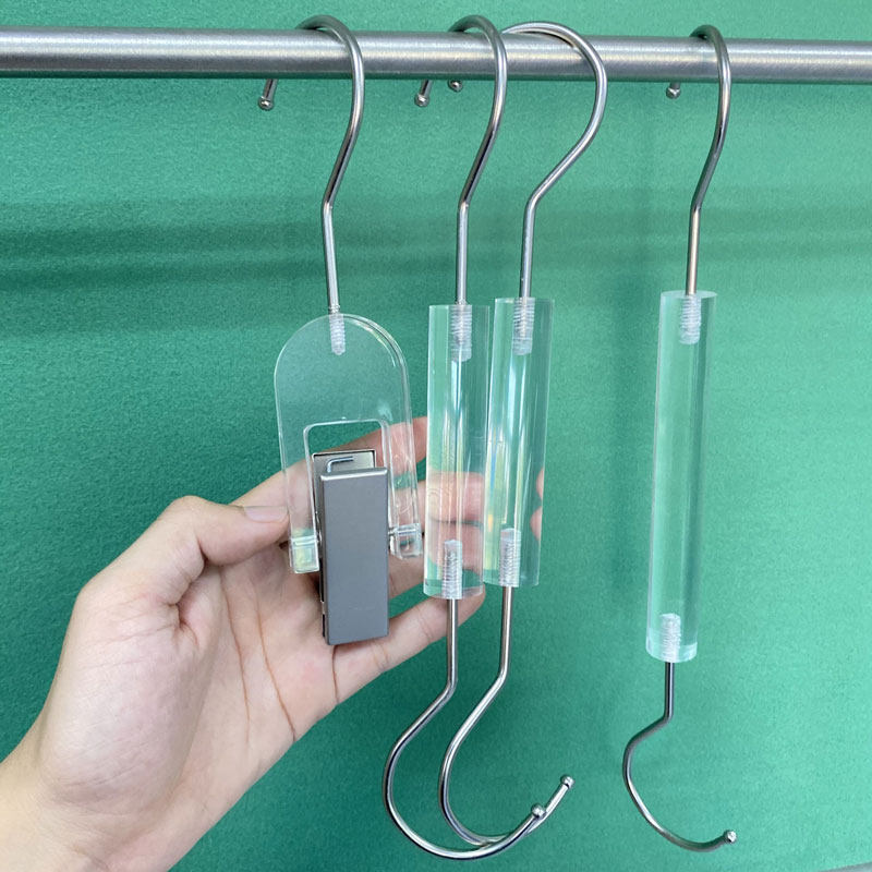 Clothing store display hook stainless steel solid wood clothes hook clip acrylic S hook Korean jeans hook bag
