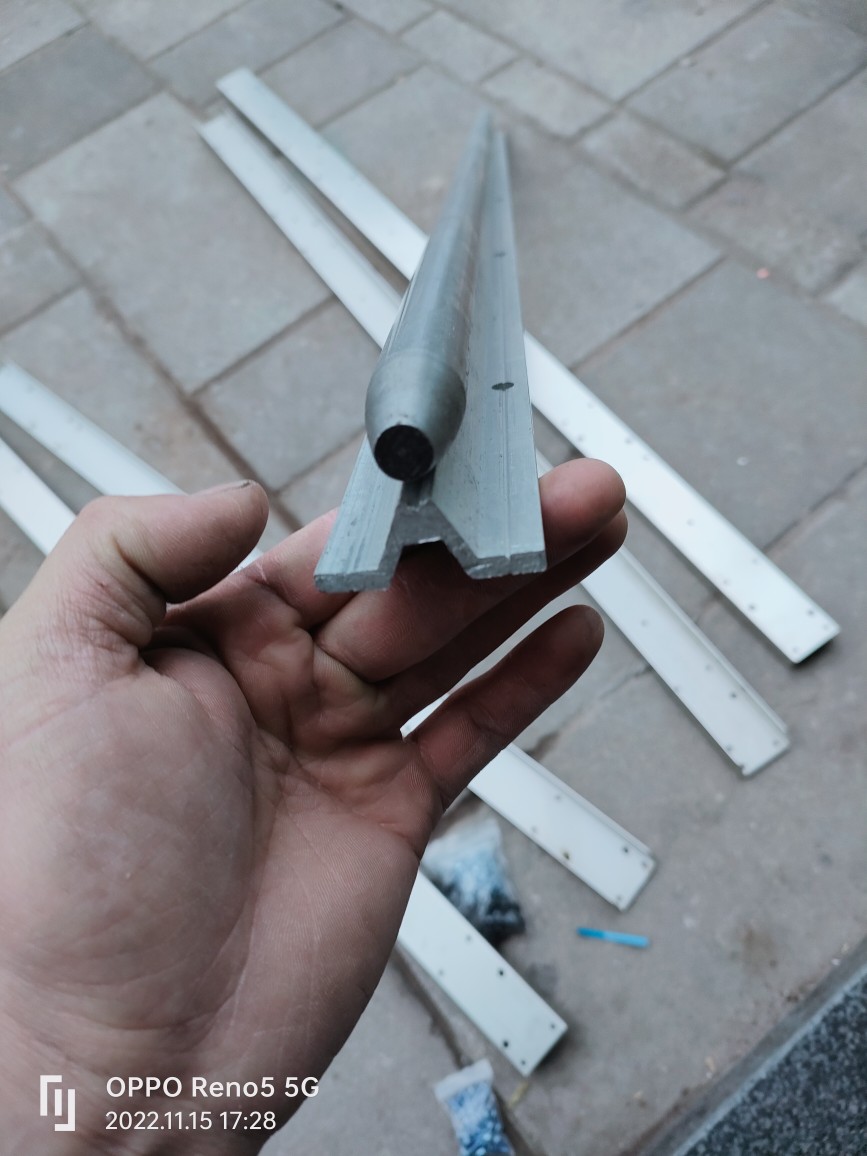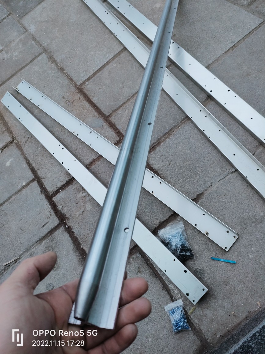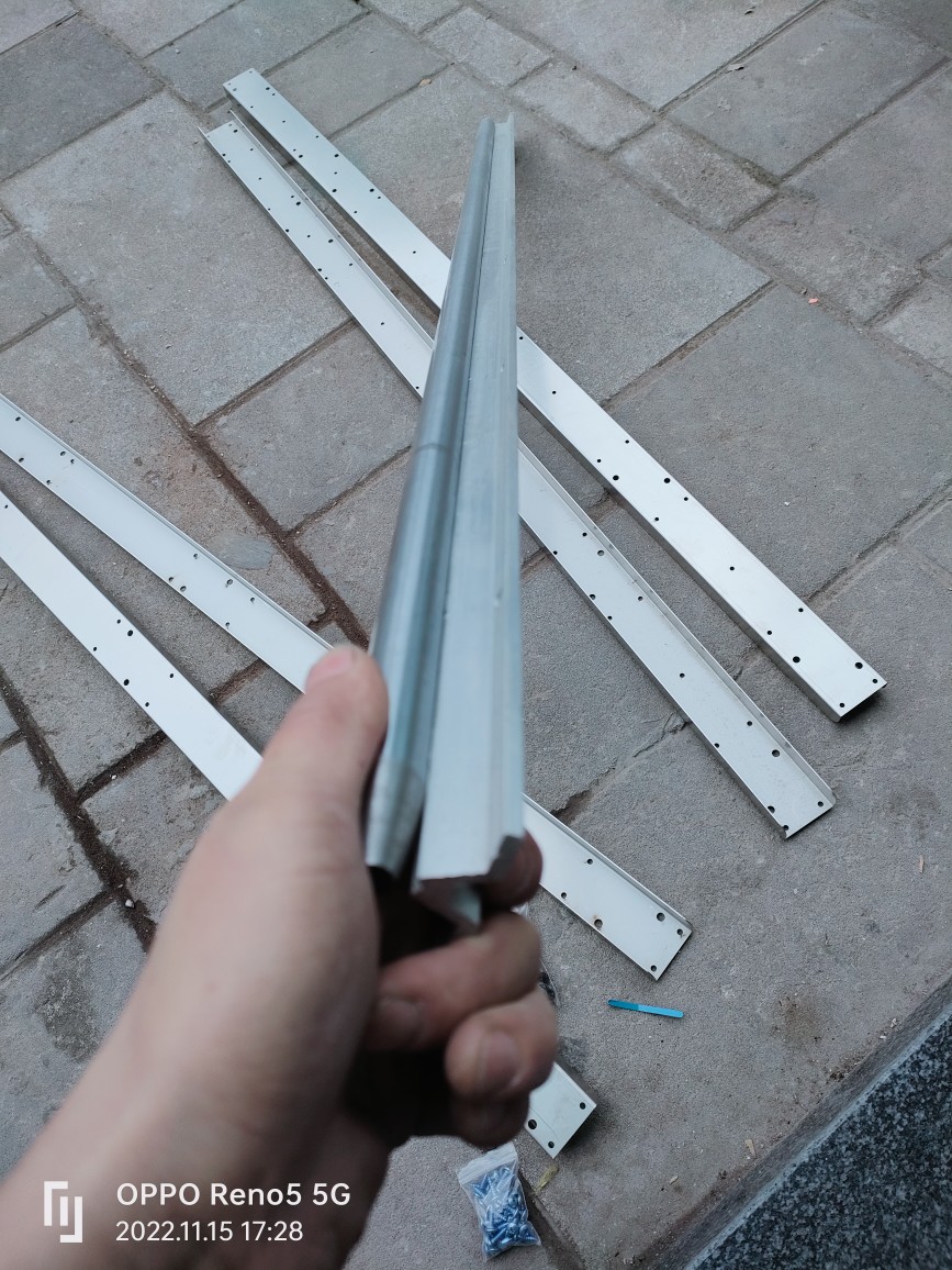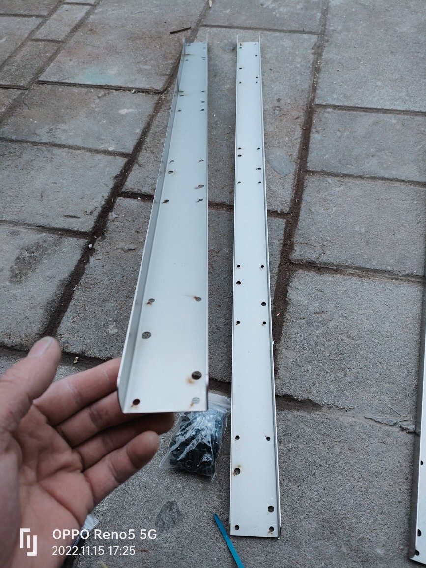 Two 1m2 rails, 10 sliders with screws, two rails without slider screws, 10 sliders, one with locking function, two one-meter rails, 10 sliders, two one-meter steel screws