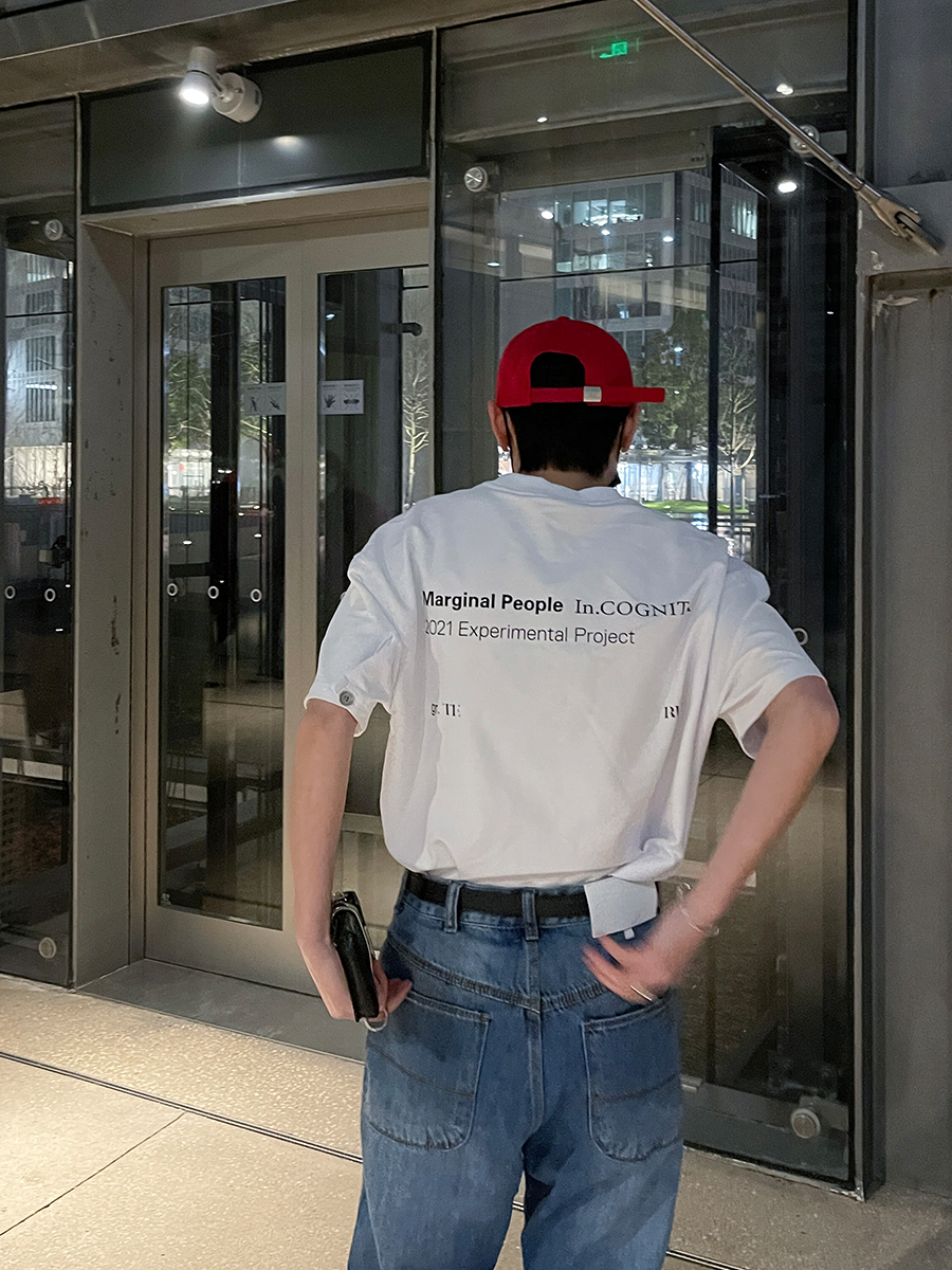 TERRAINCOGNIT Theme Printing Comfortable Hundred Pitch Casual T-shirt Sleeve Cross Structure Reflecting Short Sleeves for Men and Women
