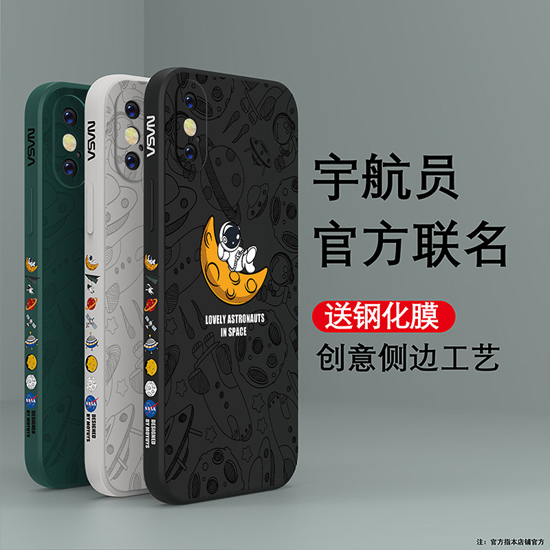 Astronaut Apple x mobile phone protection shell iphone xs max liquid silicone cover xs apple xr tide card net red men with female new xsmax limited edition ins full pack anti-fall