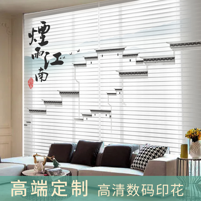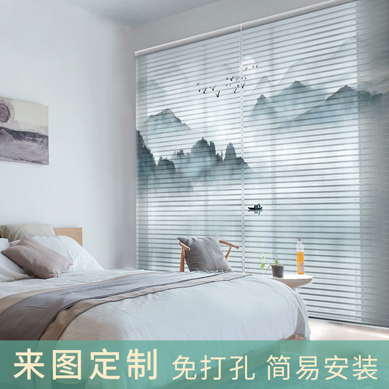 Shangri-La curtain shutters, unpunched bedroom kitchen New Chinese Nordic pull roll curtain