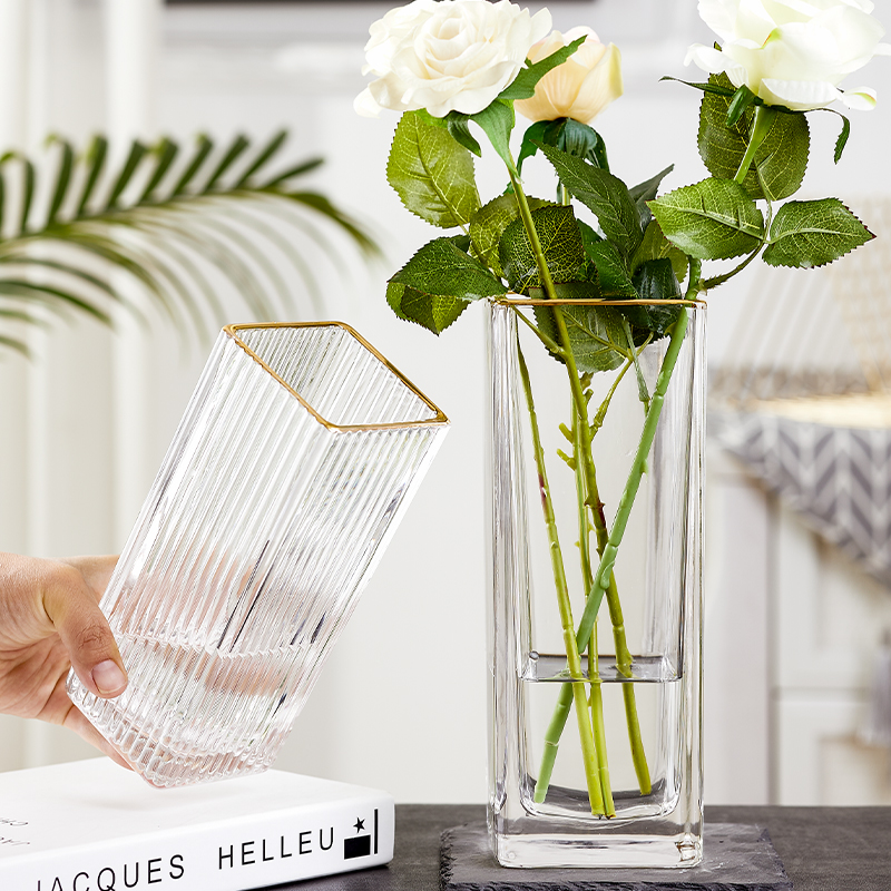 Simple and modern square glass vase ornaments transparent living room flower arrangement decoration Light luxury desktop high-grade creative flower