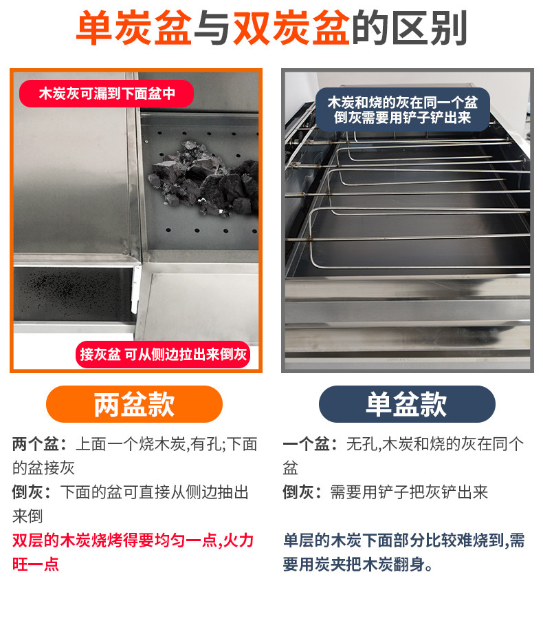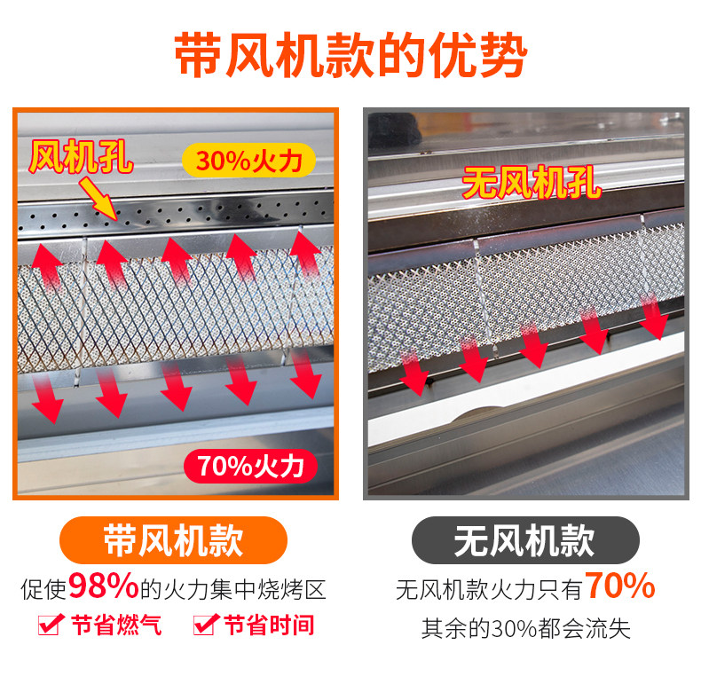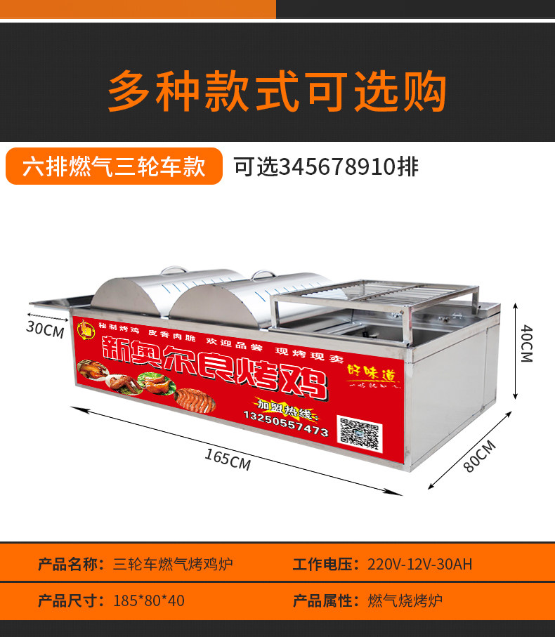 Four-row charcoal tricycle single layer (104*70*40 five-row charcoal tricycle single-layer (122*70*40 six-row charcoal tricycle single-layer(134*70*40 four-row charcoal tricycle double-layer(104*70*40 five-row charcoal tricycle double-layer(122*70*40 six-row charcoal tricycle double-layer(134*70*40 seven-row charcoal tricycle double-decker(164*70*40 eight-row charcoal tricycle double-decker(184*70*40)) Five-row gas tricycle (with fan) Six-row gas tricycle (with fan) Eight-row gas tricycle (with fan) Four-row gas tricycle (without fan) Five-row gas tricycle (without fan) Six-row gas tricycle (without fan)