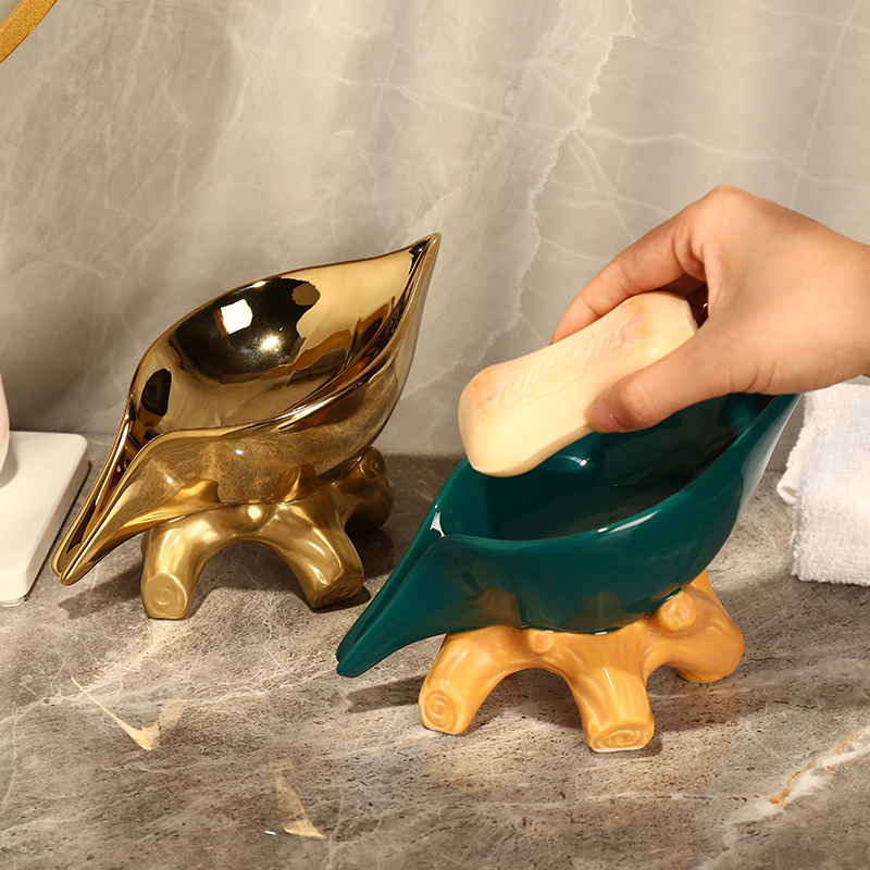 Creative tree leaves home Nordic ceramic soap box drain free punch cute soap box makeup room without water