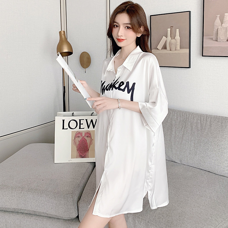 Letter shirt sleeping dress female ice wire sexy cartoon skirt boyfriend wind summer short sleeve senior pajamas new