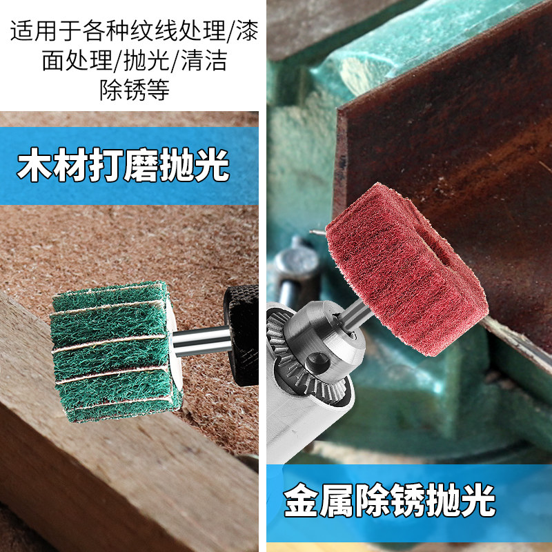 White Cloth Grinding Head Wire Drawing Wheel Stainless special nylon fiber grinding head polished wheel 6mm clamp sand flying wing wheel