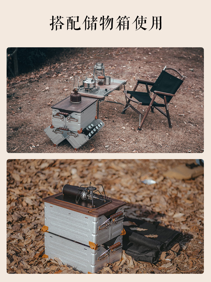 Three little donkeys outdoor black walnut small square table folding table portable barbecue table Japanese simple picnic table