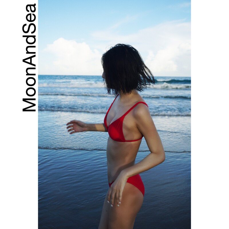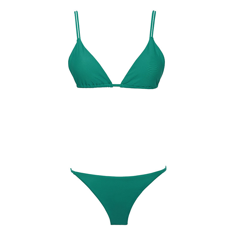 European and American simple bikini ins spice girls small chest no steel support solid color classic triangle cup split swimsuit surf