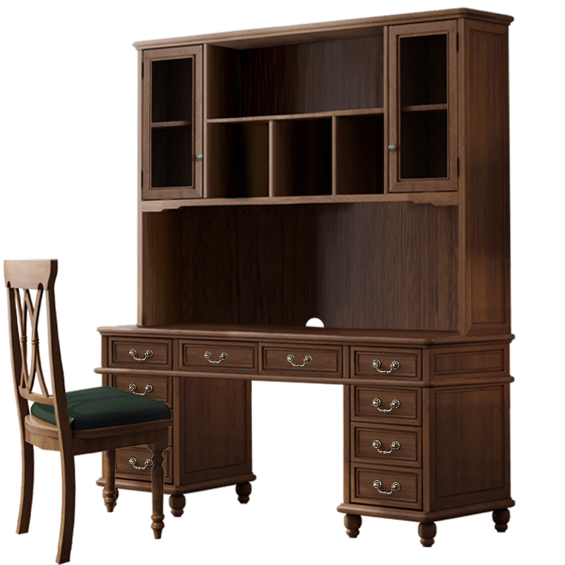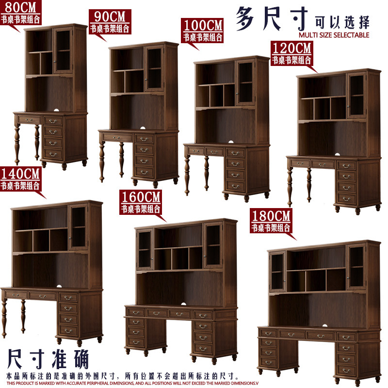 All solid wood 1 8-1 6-1 4 meters 1 2 American light luxury modern study large desk bookshelf bookcase integrated combination