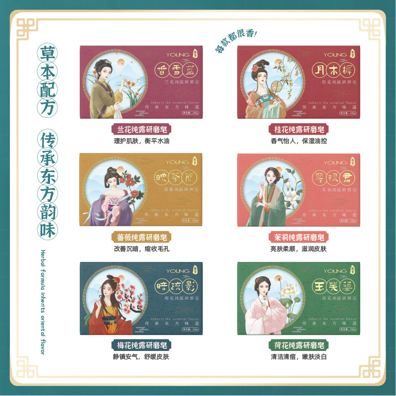 Osmanthus hydrosol grinding soap Lotus hydrosol grinding soap Orchid hydrosol grinding soap Plum blossom hydrosol grinding soap Jasmine hydrosol grinding soap Rose hydrosol grinding soap