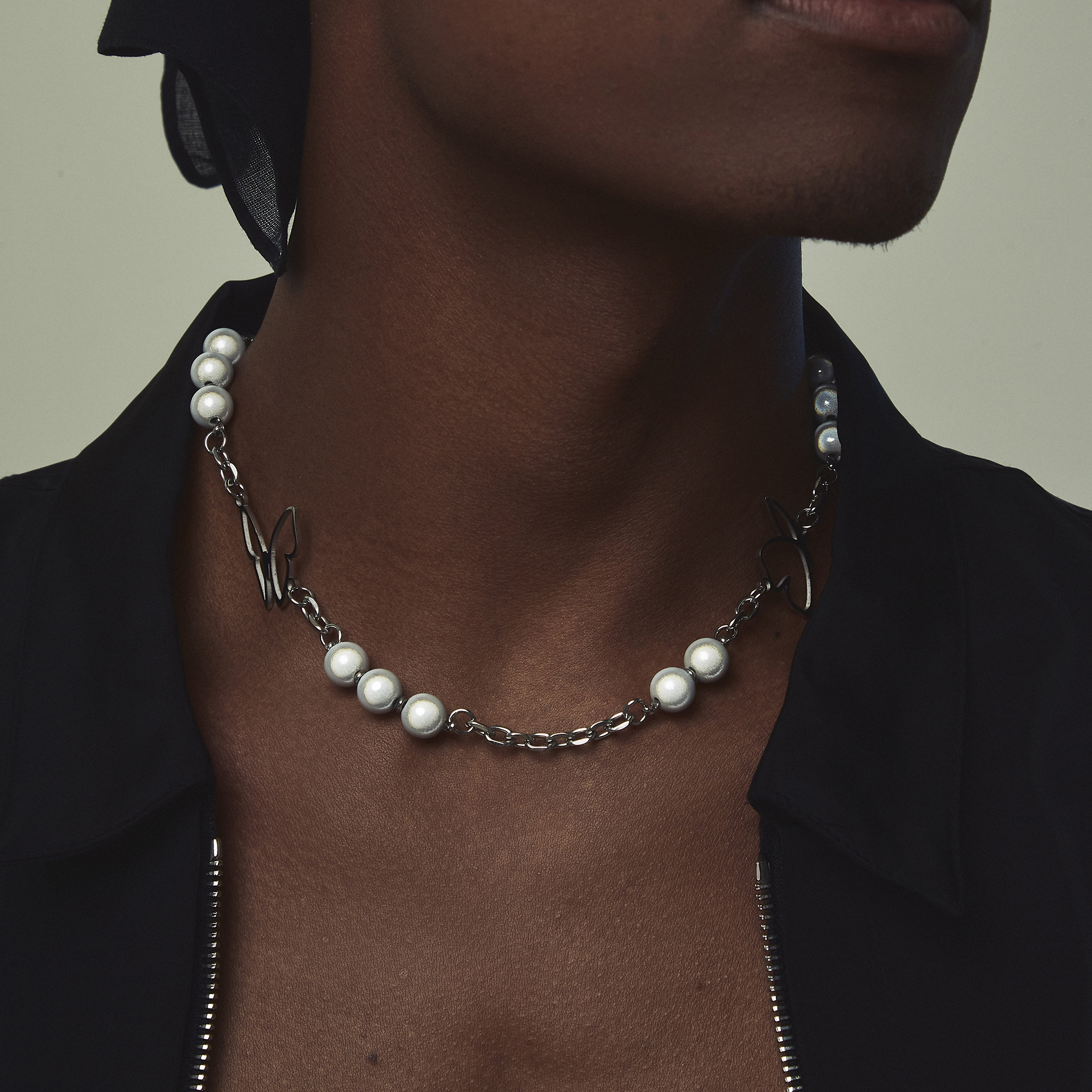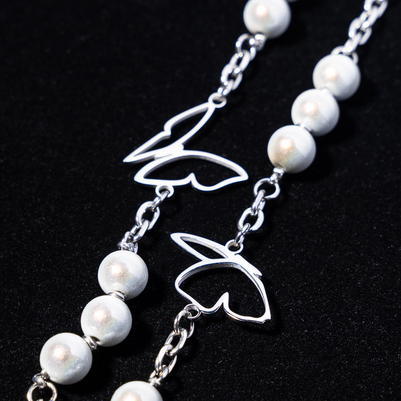 ICEGANG reflective 3M Pearl Butterfly Titanium Steel Splicing Necklace Round Japan, South Korea and US hip hop trend men and women in