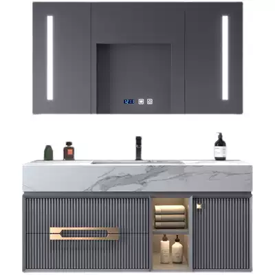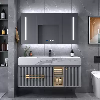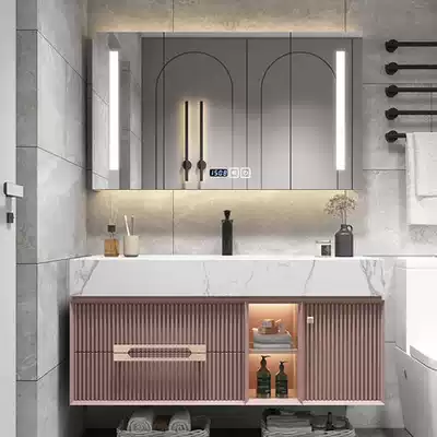 Light luxury Rock board one-in-one bathroom cabinet combination modern simple solid wood double-tank washbasin wash hand wash basin dressing room wash table
