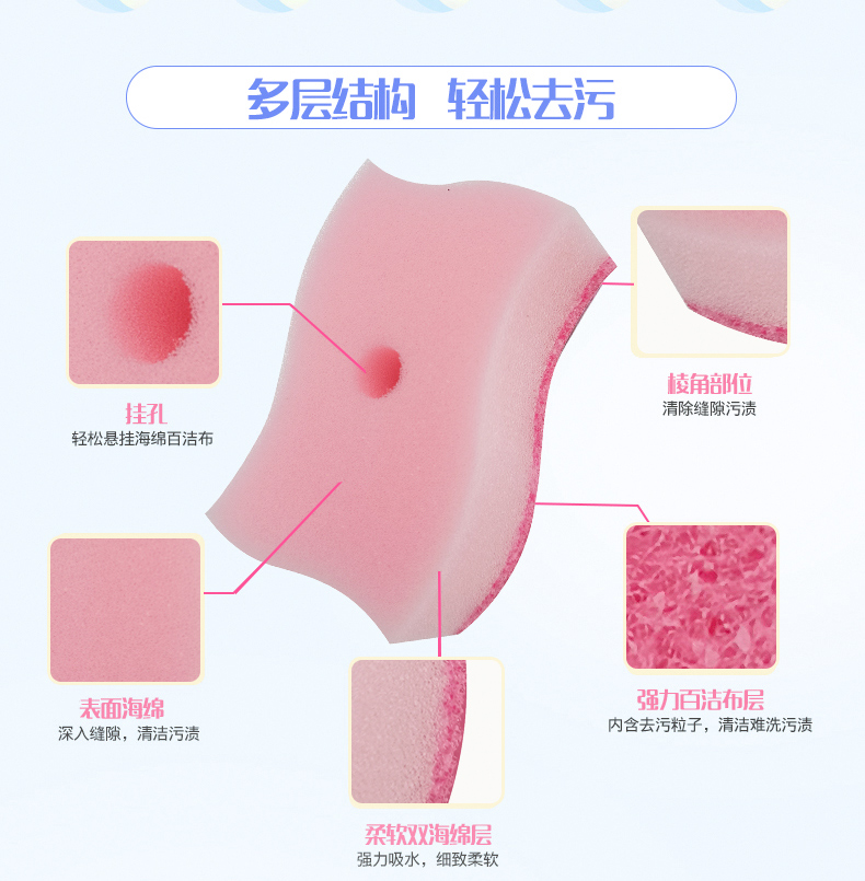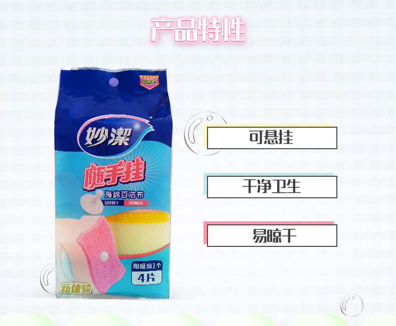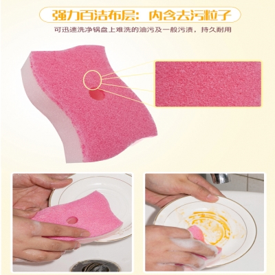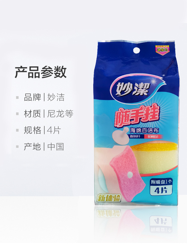 Miaojie scouring pad wipe 4 pieces of hanging sponge dishwashing kitchen rag cleaning brush pot brush bowl to remove oil