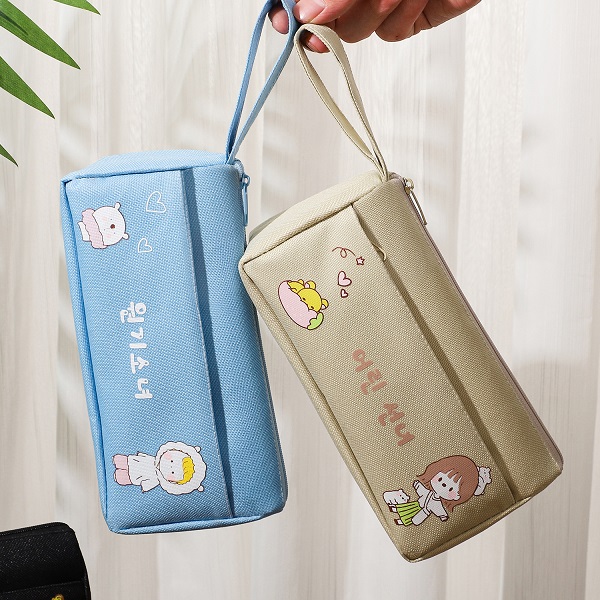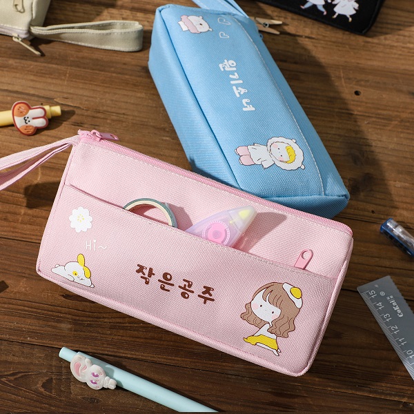 Han edition in large capacity handbag girls minimal Qing freshly cartoon stationery bag double deck red triangle pupils adorable salt department Oxford pencil box