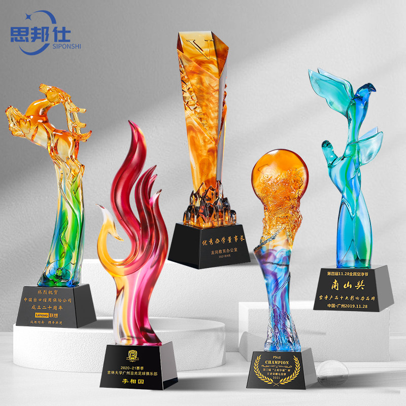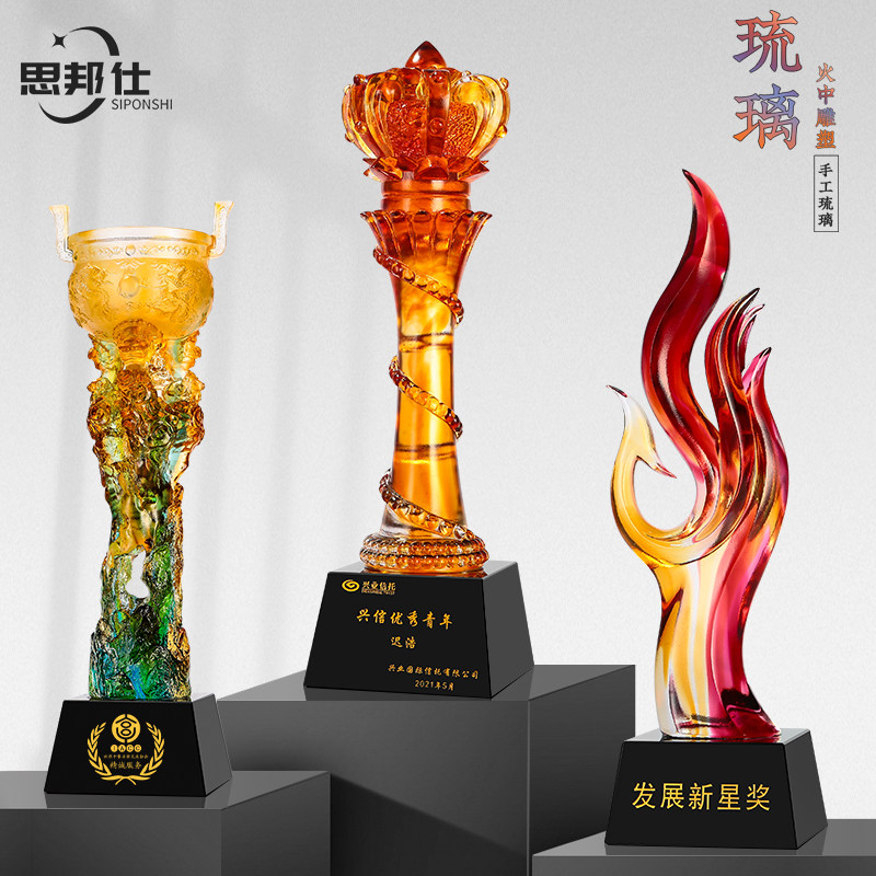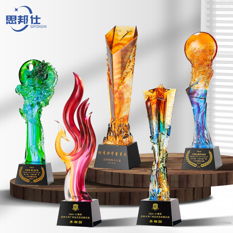 Glass trophy high-end atmospheric creative customization five-pointed star excellent staff custom engraving custom crystal trophy