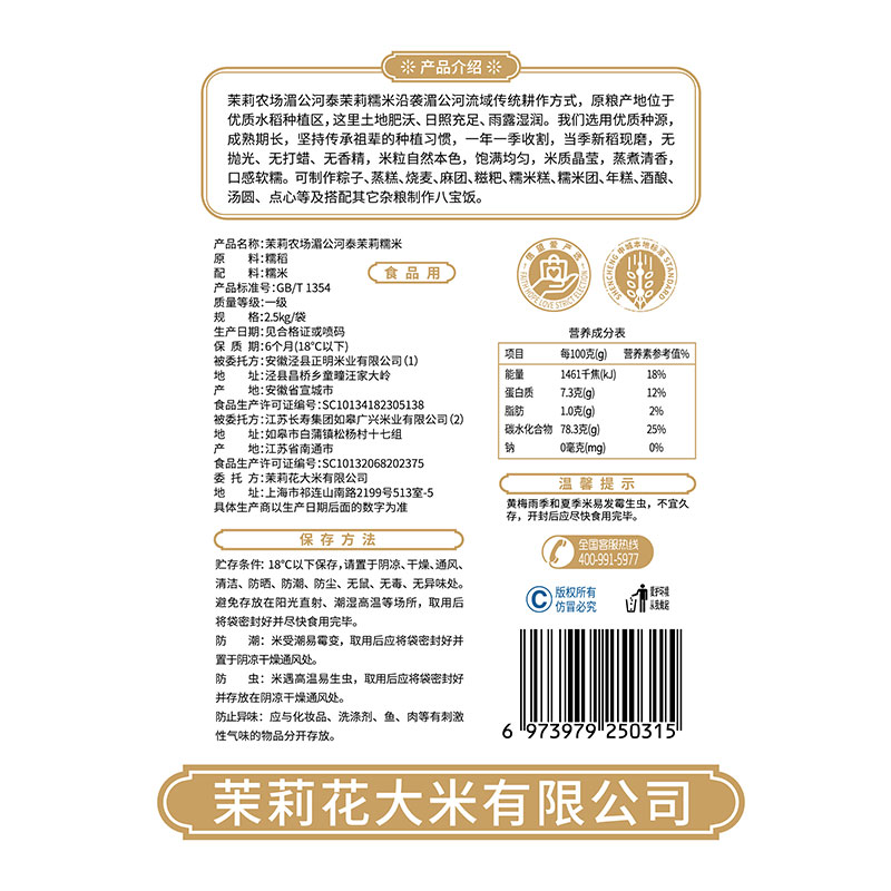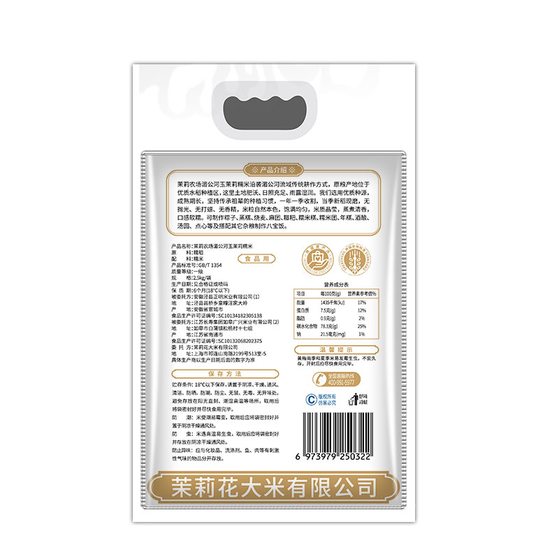 Jasmine Farm fresh long grain of glutinous rice pearl rice 2 5kg white glutinous sticky rice brewing bag 5 kg