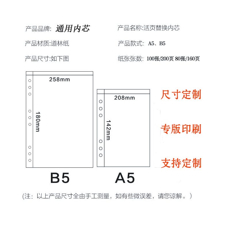 A5 loose-leaf notebook tiltcore loose-leaf inner core paper replacement inner core B5 rice yellow eye protection paper 6 holes 9 holes universal inner core detachable ring buckle stand-in core living page clip inner core linen paper thickened inner page