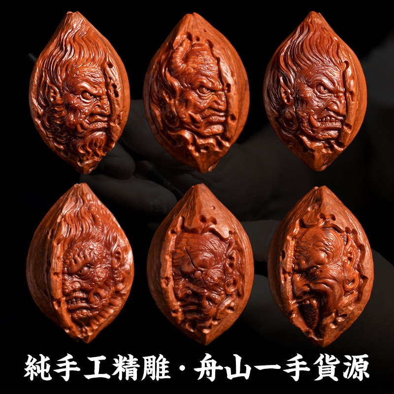 Olive core hand string carving pure handmade olive core carving Buddha devil one thought nuclear carving heart sutra Buddha devil hand famous master Kang Zechao