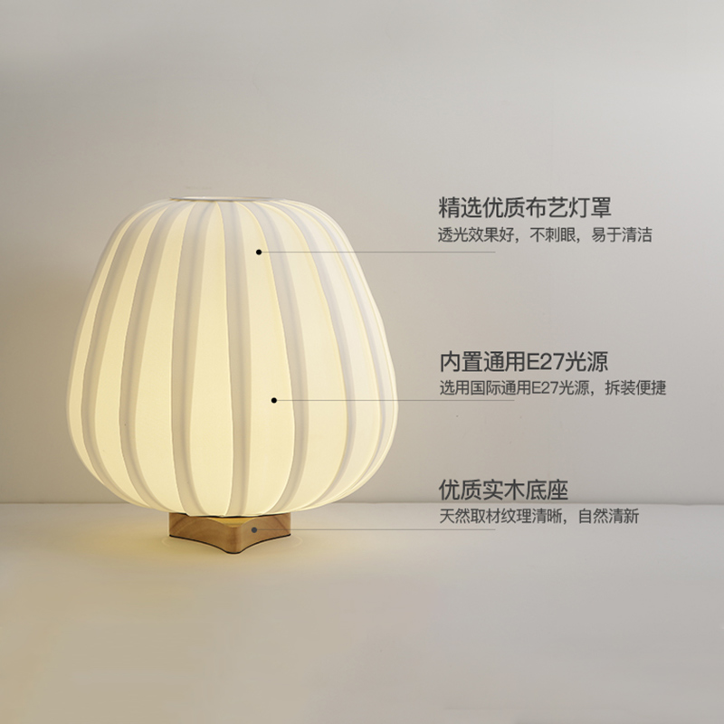 Japanese-style minimalist bedroom table lamp modern creative solid wood fabric bedside lamp warm and romantic hotel atmosphere lamp
