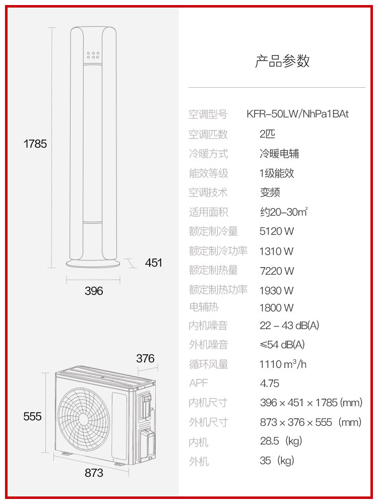 Gli vertical air conditioning 2-level frequency conversion cold and warm dual-use cabinet room Home Official flagship store Cloud Yan