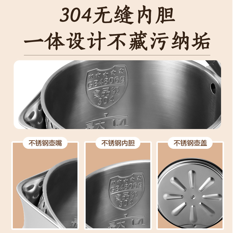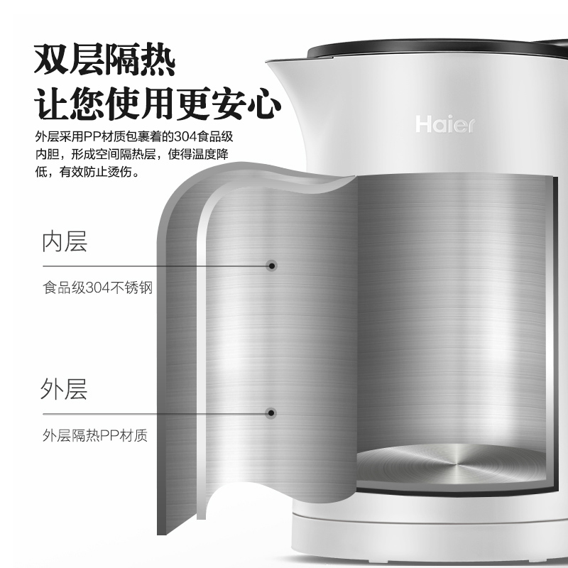 Haier Electric Heating Kettle Home Stainless Steel Large Capacity Heating Kettle Automatic Power Cut Anti-Burning Double Layer-Taobao
