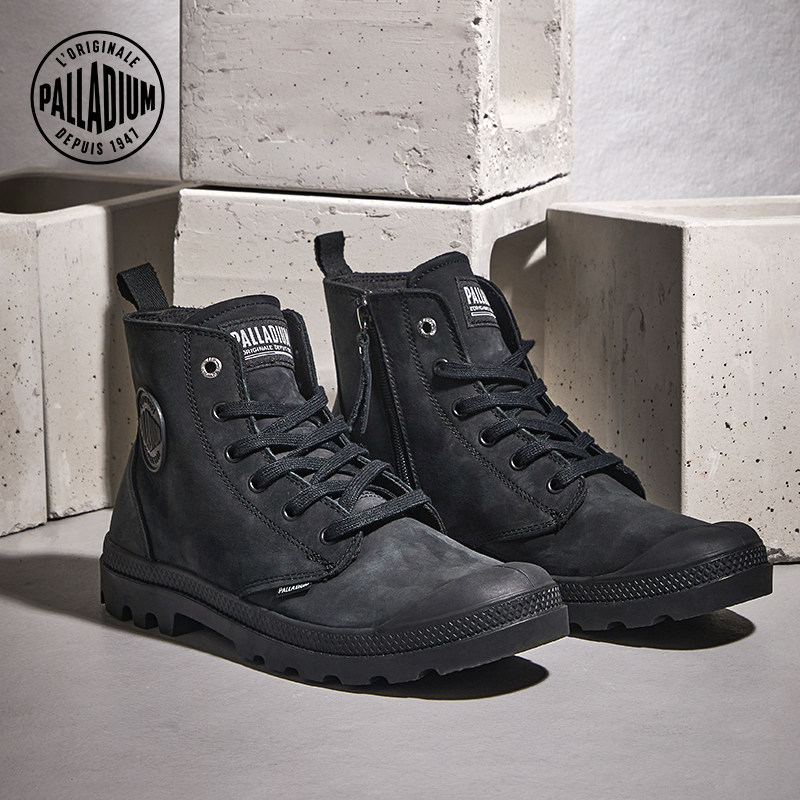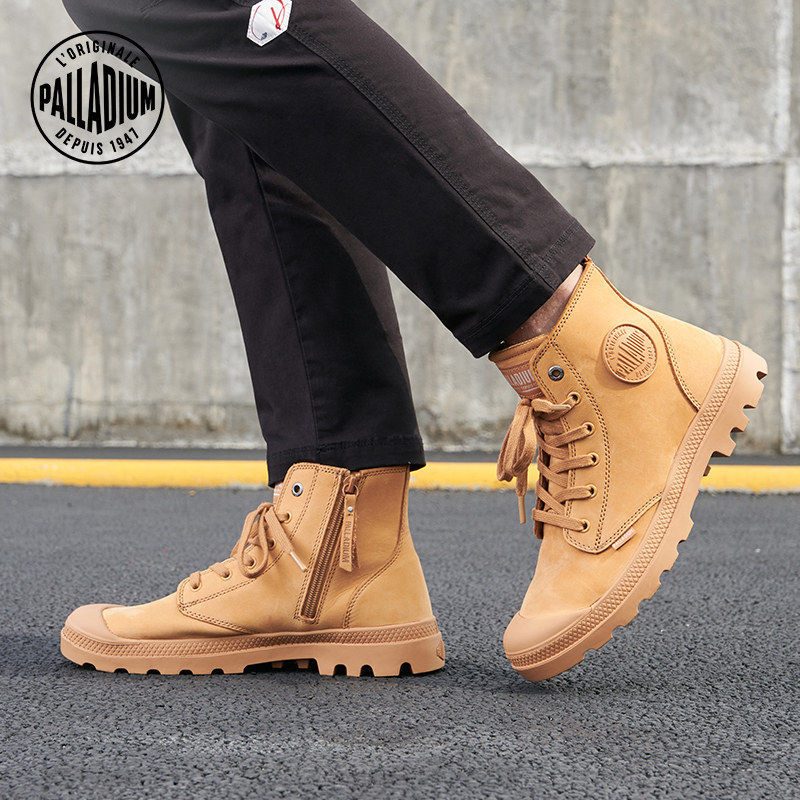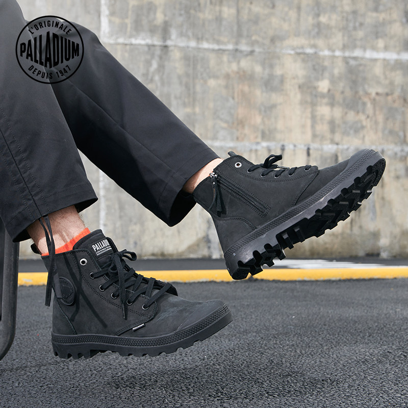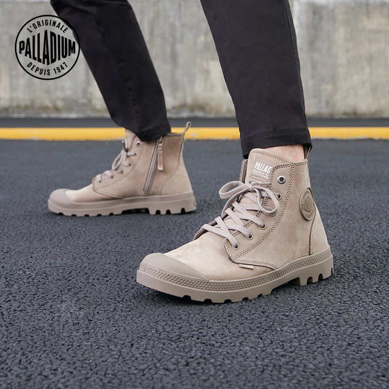 PALLAdium Palatine official Classic Rhubarb Boots Casual High Drum Men's Shoes 100 Hitch Autumn Winter Small Leather Boots 06440