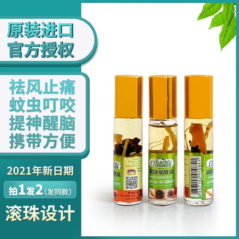 Thai ginseng walking beads greenherb green herbal oil ball bearing mosquito repellent Anti-Itchy Car Boat Clear Cool Oil Refreshing