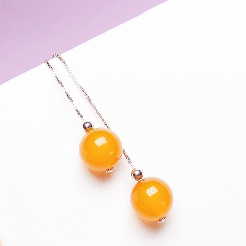 S925 pure silver round pearl ear necklace with inlaid pearl honey wax amber ear decoration ear necklace with pearl silver decoration