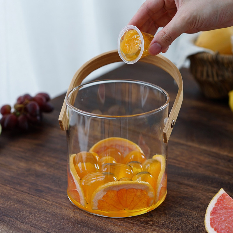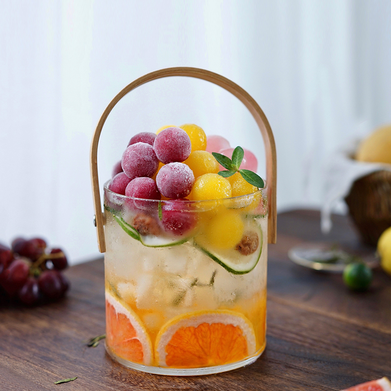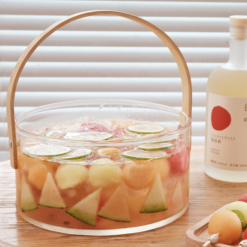 Net red fruit tea container happy bucket summer solid wood handheld fruit disk fitting glass household living room fruit basket