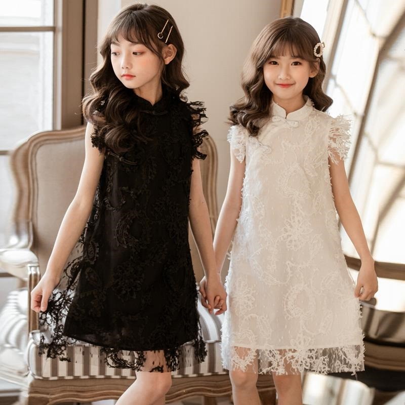 Hyun Bala Girls mesh embroidery plate buckle Cheongsam dress in the Korean version of the summer Chinese style princess skirt