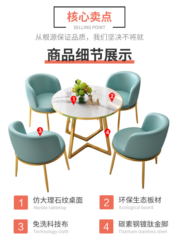 Simple rock slab negotiation table and chair combination sales department reception leisure table office marble reception small round table