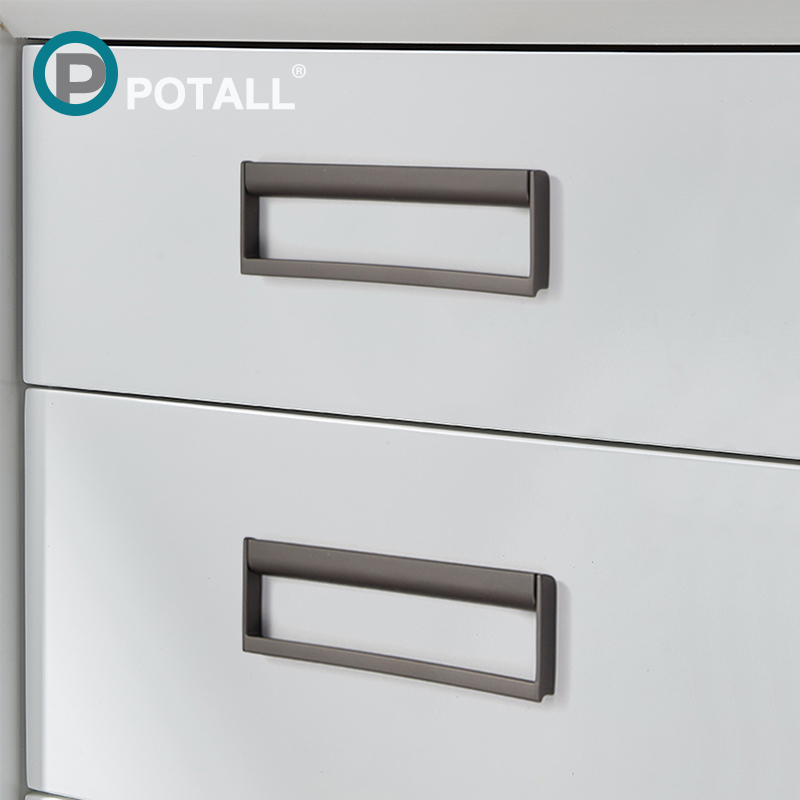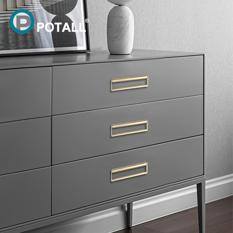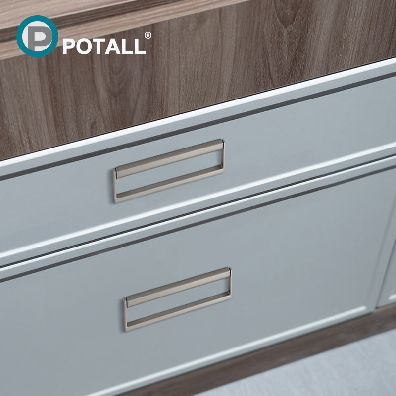 Modern minimalist grey drawer dark pull handle invisible small handle bright gold flat Nordic light and luxurious pull ring handle