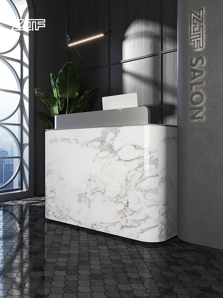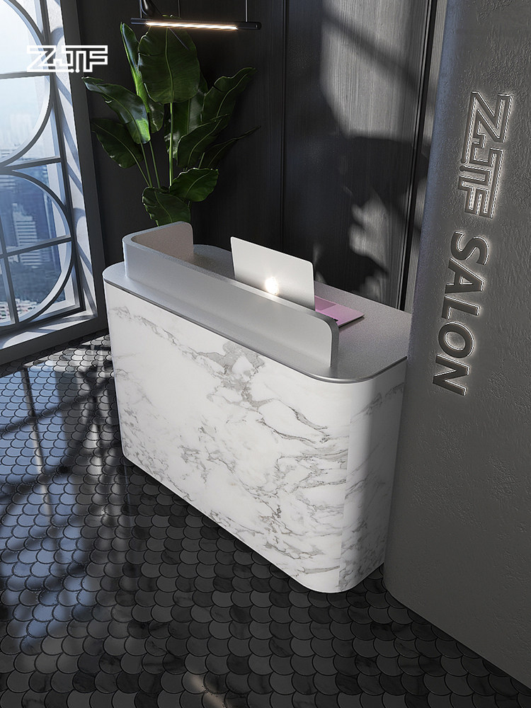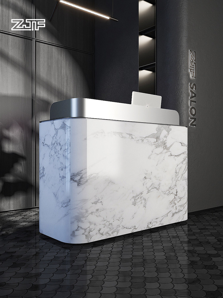 Crowdsmiths Workshop Clothing Shop Silver Light Extravagant Collection Silver Counter Imitation Marble Arched Beauty Salon Small Front Desk Reception Desk D4