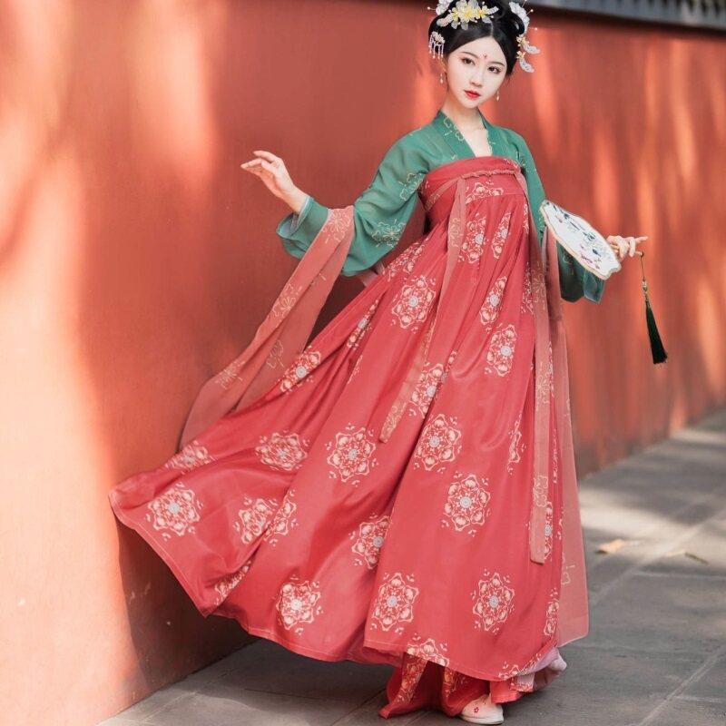 Chinese cabbage hanfu whole set (lacquered) female summer Chinese Wind Qi Chest Jacket Skirt Student New Pint of Ancient Dress Fairy Air Flutter