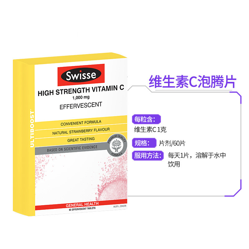 Australia swisse vitamin C foam ingot vc female high concentration natural adult 60-piece box