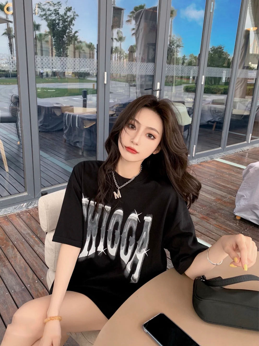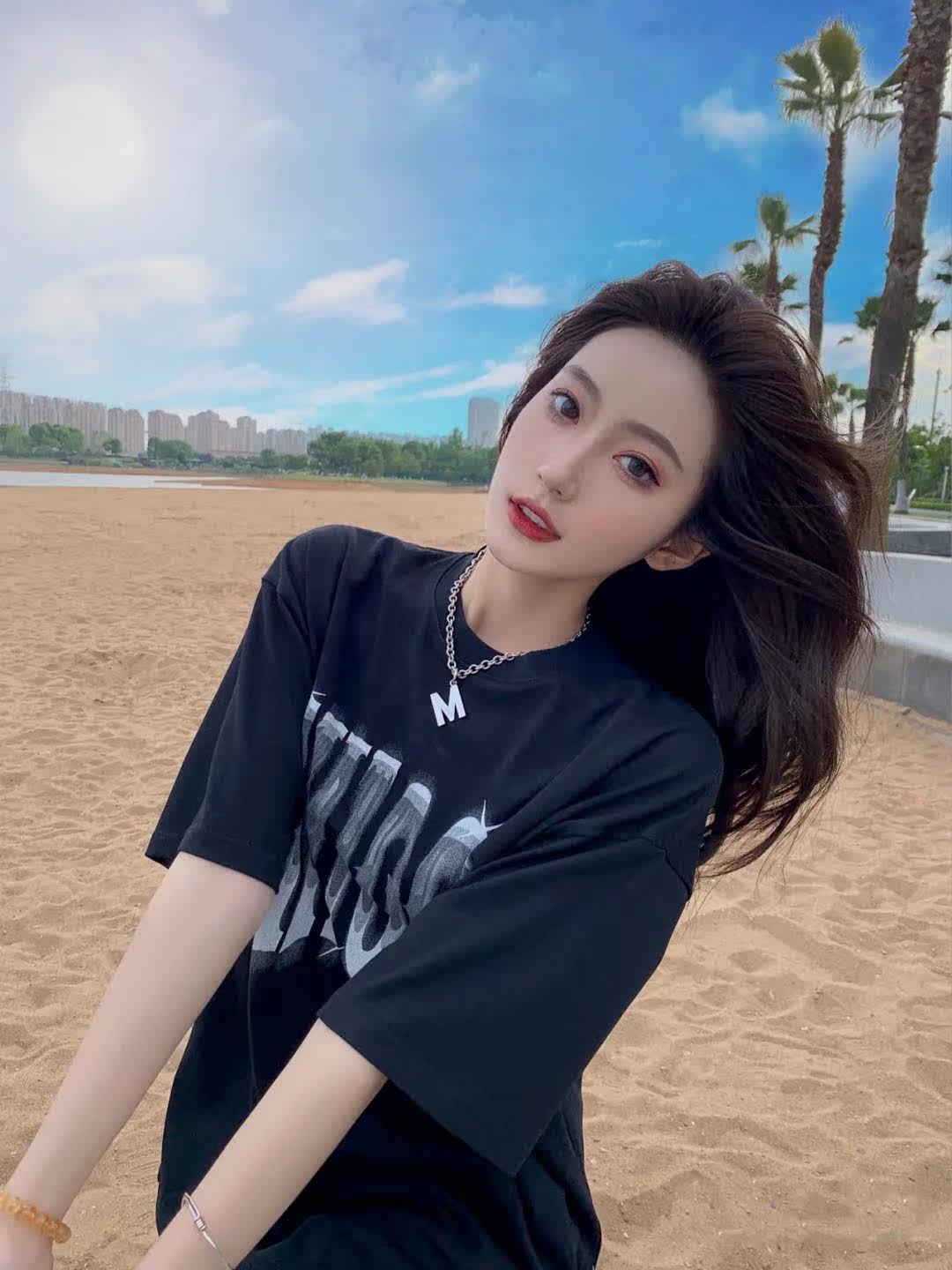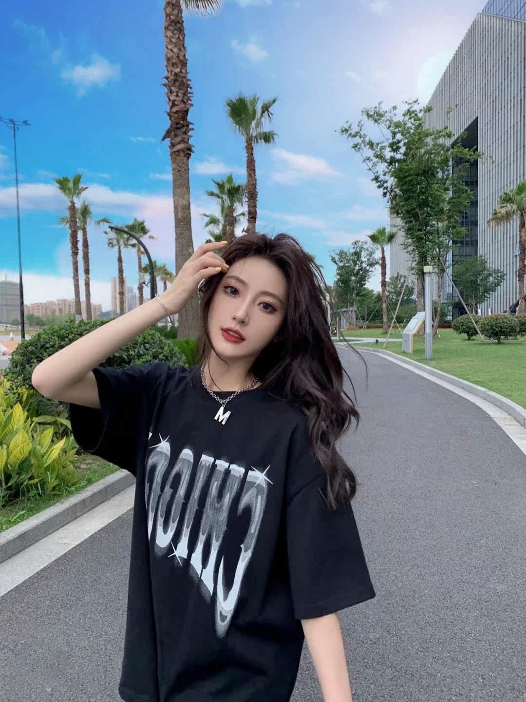2021 summer new Harajuku wind bf hip hop port style fashion brand leisure wind ins medium and long version cotton T-shirt women