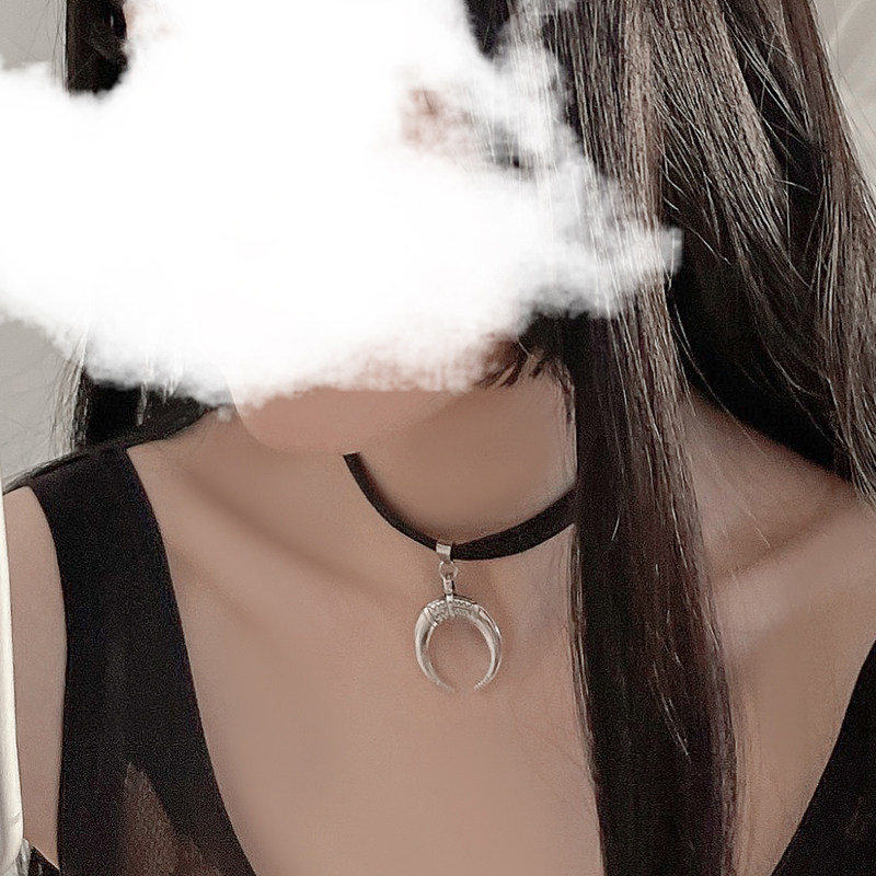 Elegant Little Woman High-end Moon Pendant Item Ring Necklace Retro Crescent Neck Ring Ring Red Dark Wind Ornaments