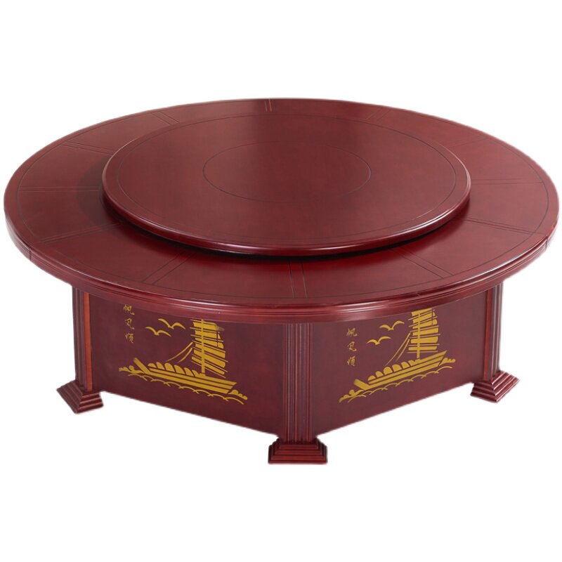 Hotel private room Dining room Solid wood round table with turntable electric rotating dining table Large round table 12 20 people with Chinese style