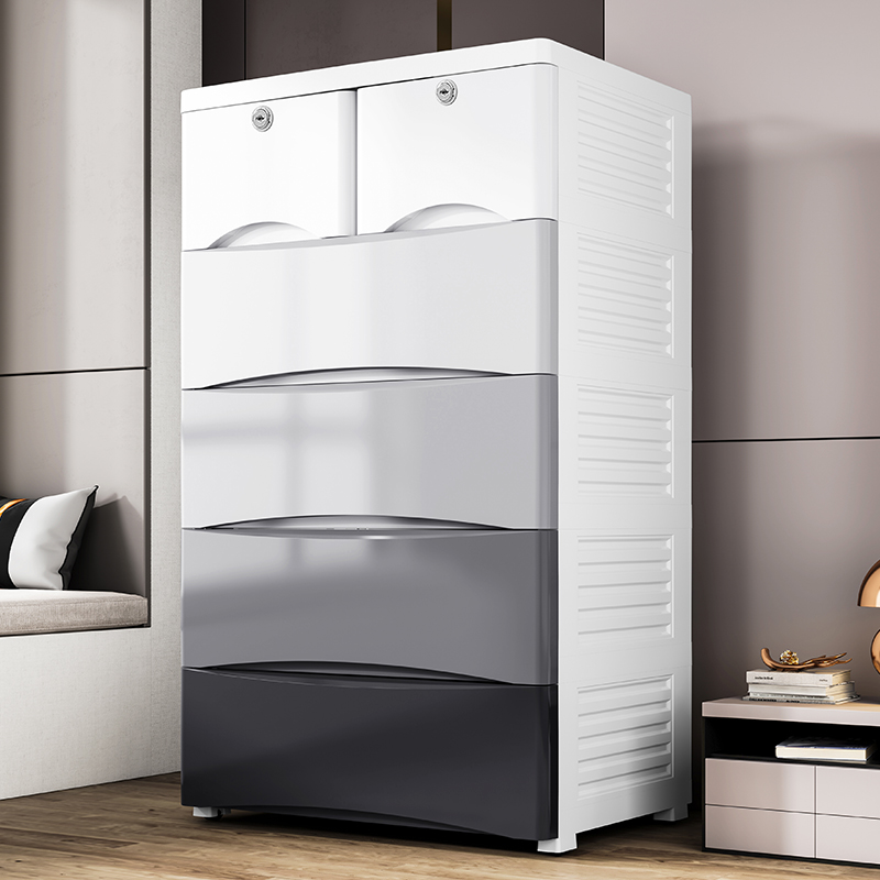 Thickened large-capacity drawer-type storage cabinet balcony 58 broadband wheel finishing box plastic kitchen cabinet locker