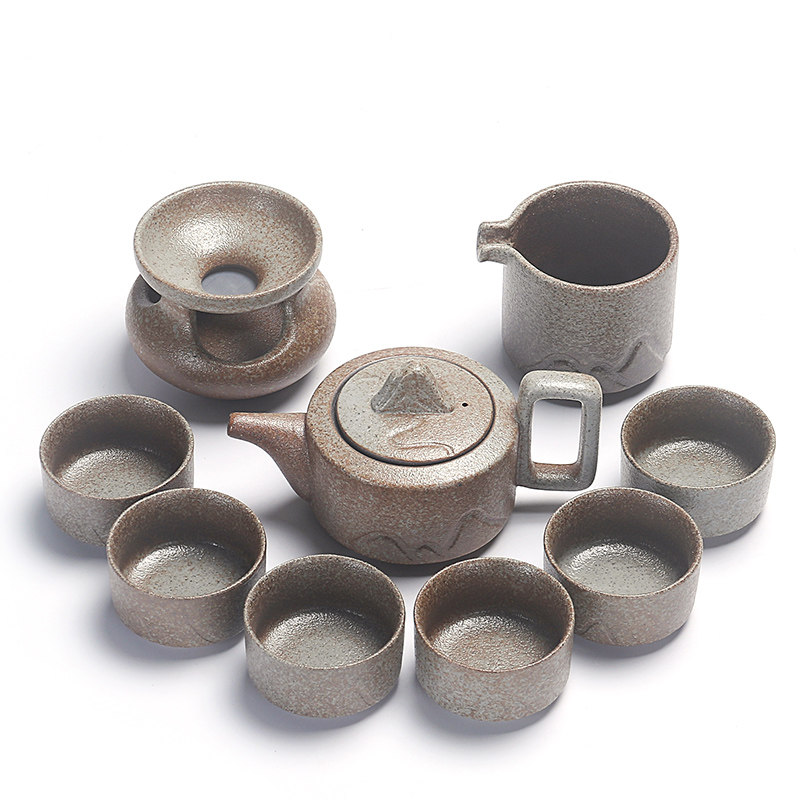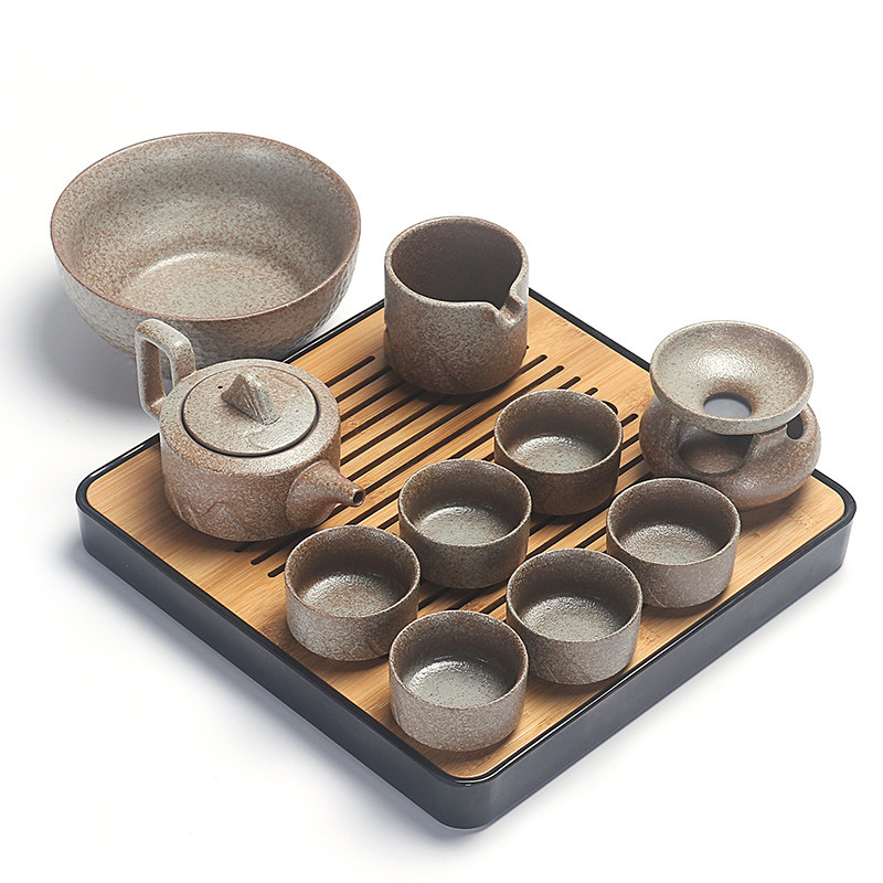 Retro rough pottery Japanese-style kung fu tea set home modern minimalist ceramic landscape tea cup teapot small tea table