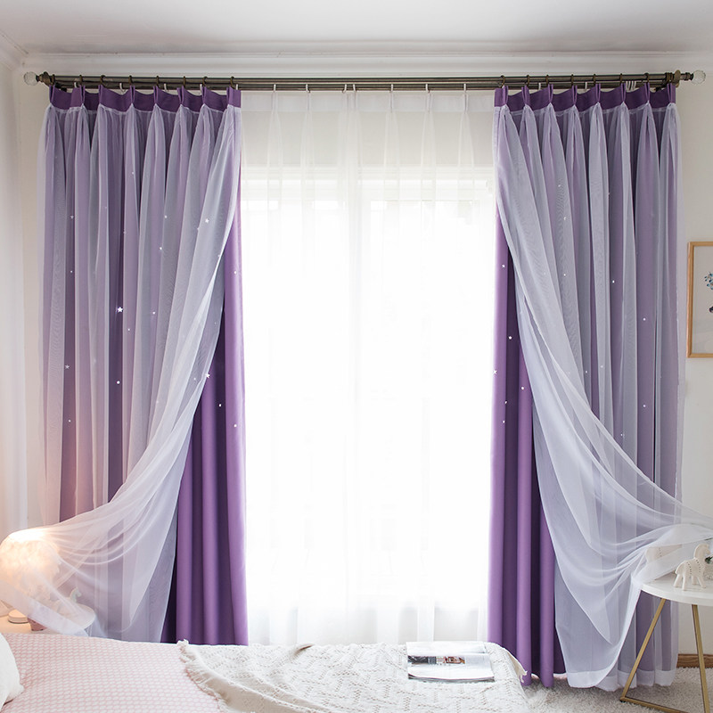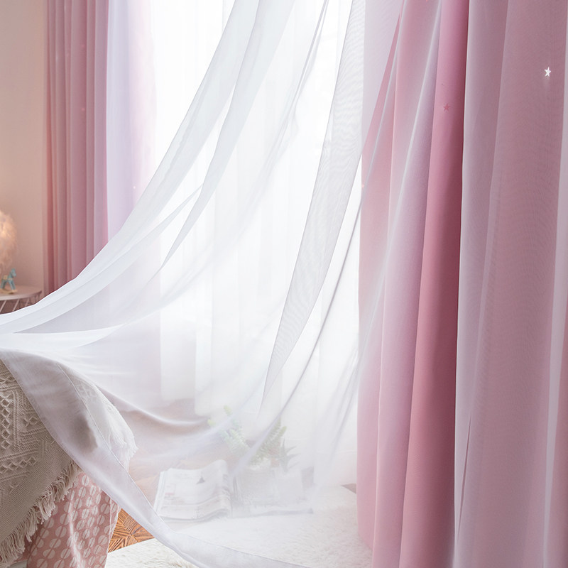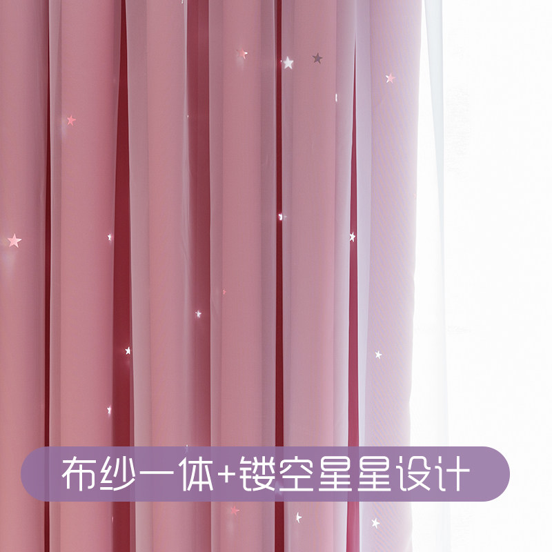 Curtain bedroom ins wind girl hook double-layer cloth yarn integrated net red floating window sheer curtain 2022 new blackout