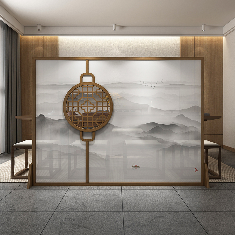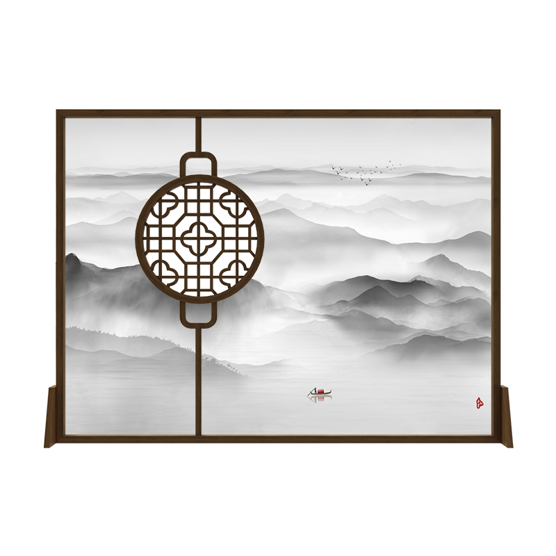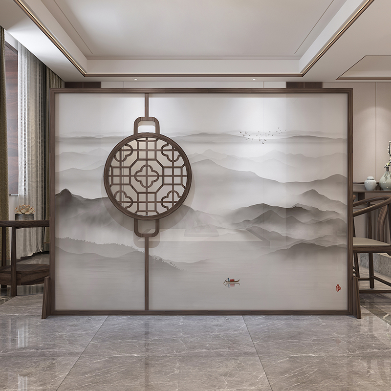 New Chinese Entrance Screen Partition Wall Tea Room Decoration Living Room Modern Genguan Landscape Hollowed-out Carved Solid Wood Holder