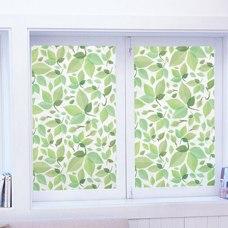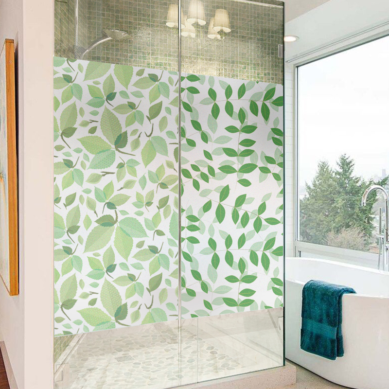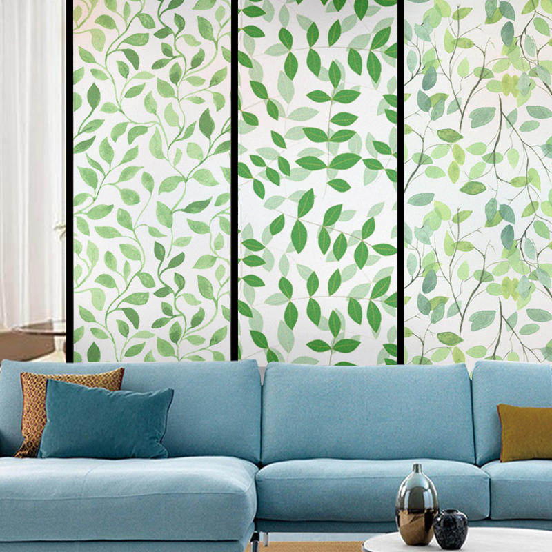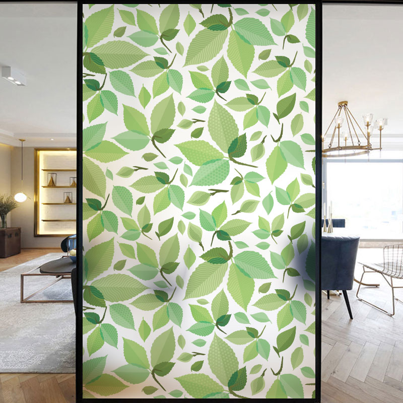 Window Glass Stickler Shading Bathroom Makeup Room Moving Door Anti-Peep Film Fresh Green Plant Frosted Window Sticker Anti-Walk Light