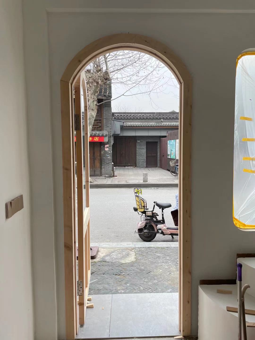 Vaulted Log Solid Wooden Door Shop Gate Café Hall Door Egg Pastry Shop Open Door Room Door American Round Arch
