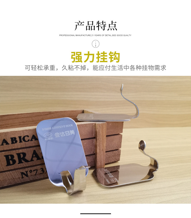 Jinda Japan-US seamless adhesive metal hook strong hook stainless steel non-perforated wall hanging kitchen dressing room