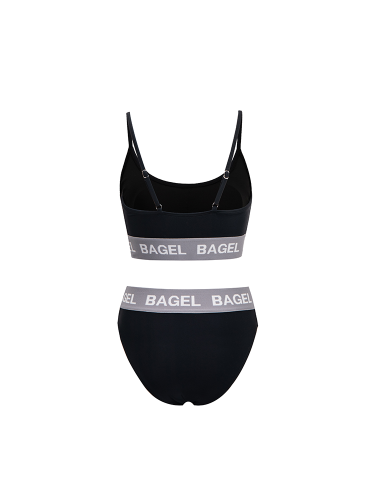 Bagel Swimsuit Motion Black Yoga Show in Bubble Spa Wide Side Logo Logo with Solid Band Swimsuit