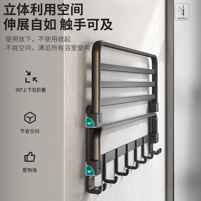 Black towel rack 50cm bath towel rack 60cm double folding 60cm towel rack flat tube two-piece set flat tube two-piece set 1 flat tube three-piece set flat tube four-piece set flat tube five-piece flat tube six-piece set flat tube seven-piece