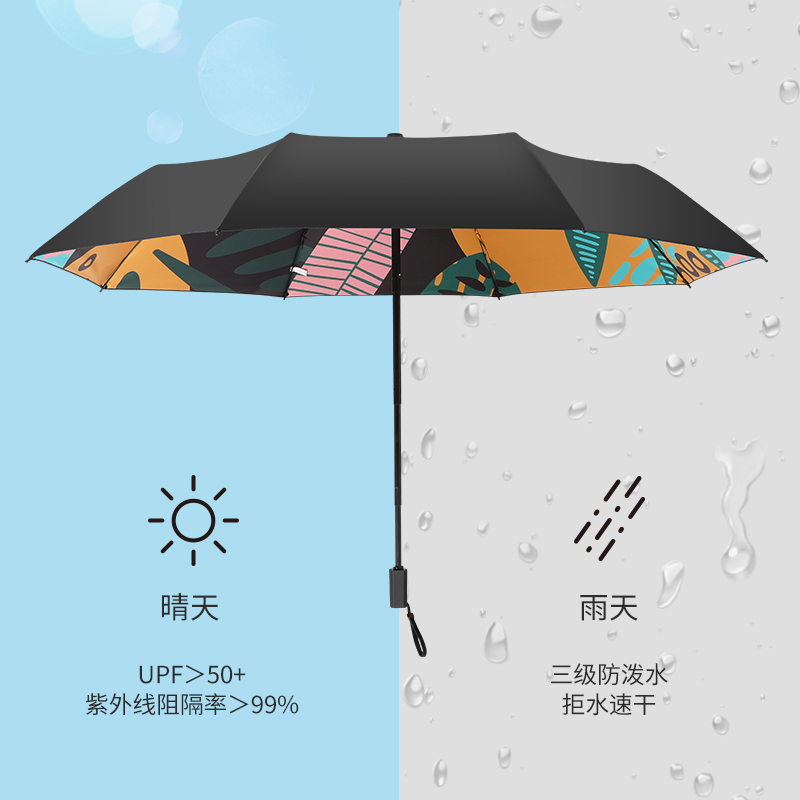 Small fresh parasol black glue sunscreen anti-UV umbrella female folding small portable rain and sun dual-use umbrella