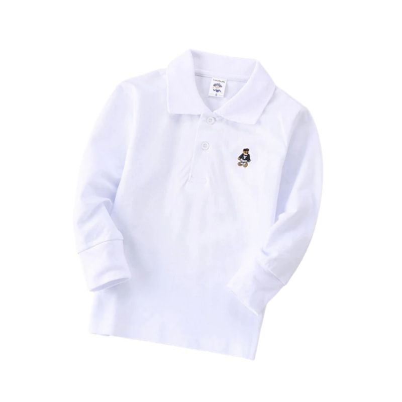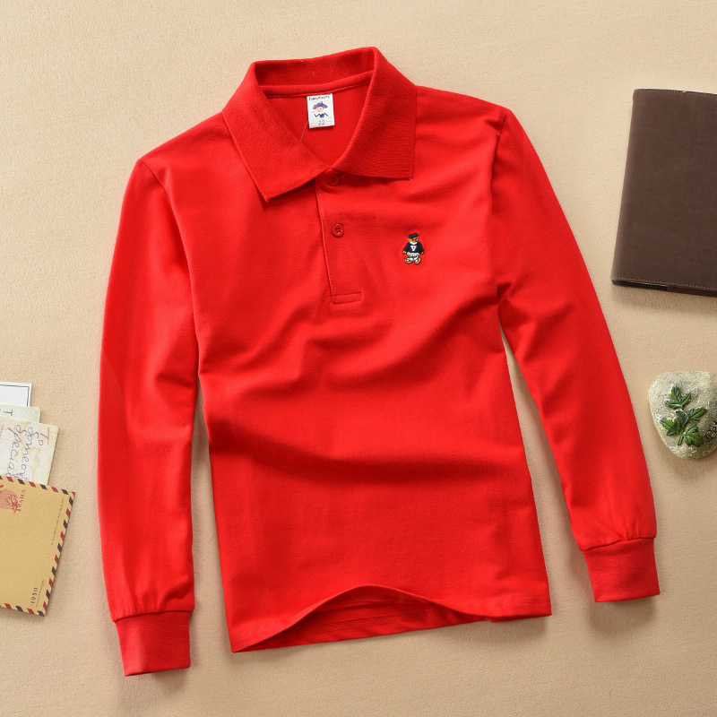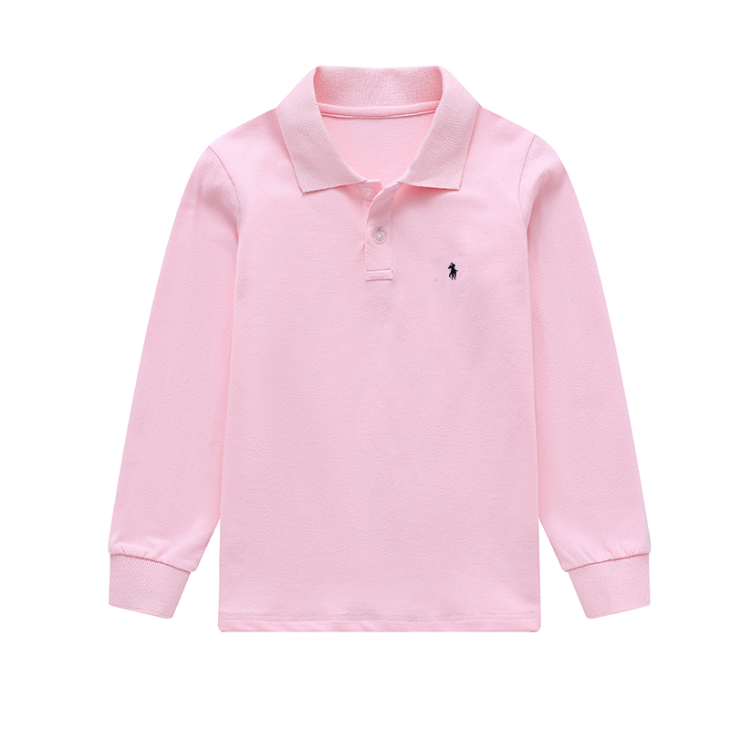 Boys and girls solid color white T-shirt tops middle-aged and older children's long-sleeved POLO bottoming shirt pure cotton primary school student class uniform school uniform